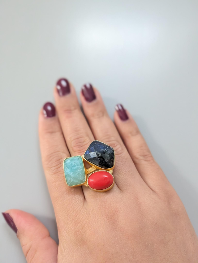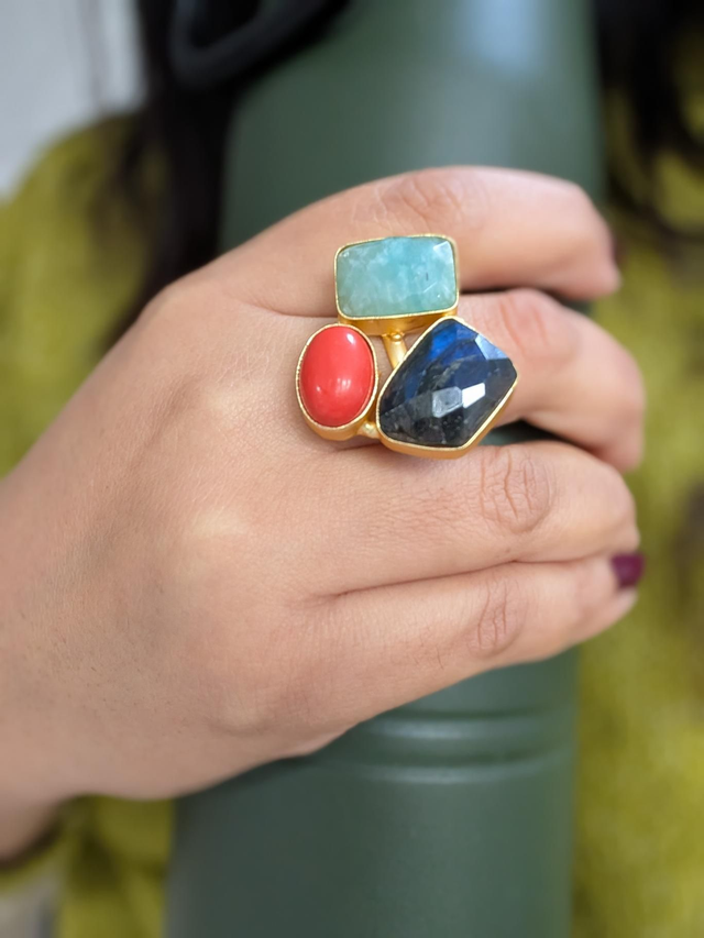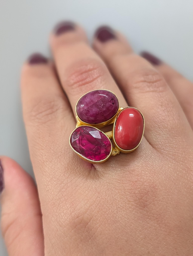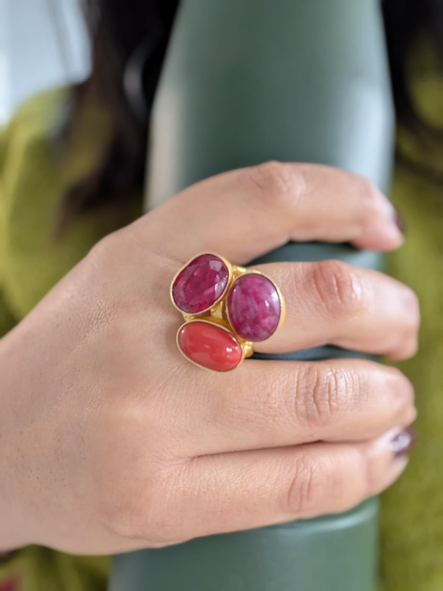 Natural Gemstone Rings|Coral|Blue Sapphire|Ruby|Onyx|Gehna by Anjaneya Jewelry