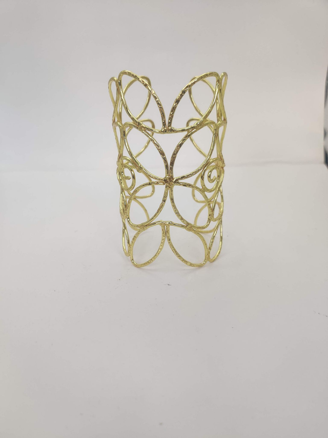 Elevate your style with our exquisite Flower Shaped Cuff Bracelet. This stunning statement piece is expertly crafted from golden polished brass metal and features intricate details that exude elegance and charm. The adjustable design ensures a perfect fit, making it the ideal accessory for any occasion. Whether worn alone or stacked with other jewelry, this cuff bracelet is a versatile must-have in any fashionista's collection. Treat yourself or surprise her with this timeless piece that will surely make a lasting impression. Perfect for adding a touch of sophistication to any outfit.