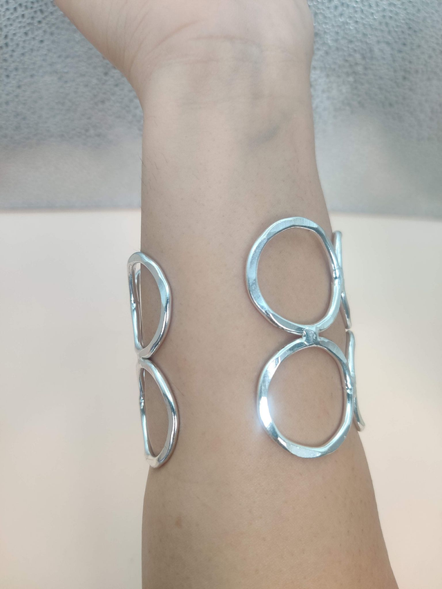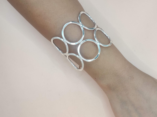 Statement Jewellery- Wide Cuff hammered Circles bracelet Adjustable