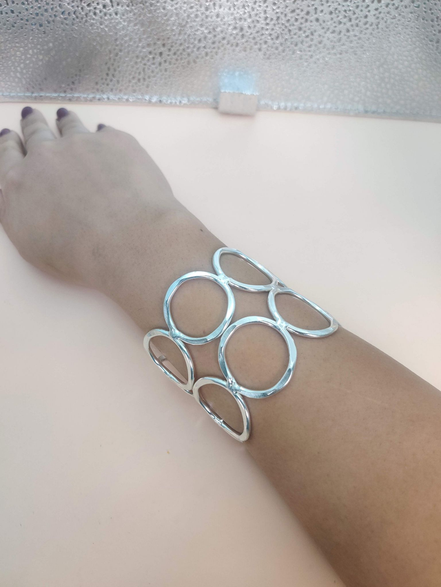 Elevate your style with our stunning wide cuff hammered circles bracelet. This adjustable cuff bracelet is crafted from high-quality brass metal, intricately designed with silver polished hammered circles for a statement look. The bold design and adjustable fit make it the perfect accessory for any outfit, adding a touch of sophistication and elegance to your ensemble. Make a statement with this eye-catching piece of statement jewelry that is sure to turn heads wherever you go. Perfect for both casual and formal occasions, this cuff bracelet is a must-have addition to your jewelry collection.